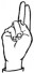 На ћирилици написано НАДЈА БРУЈИЋ састоји се из 11 слова [?]. Исписано ћириличном једноручном азбуком за глувонеме: